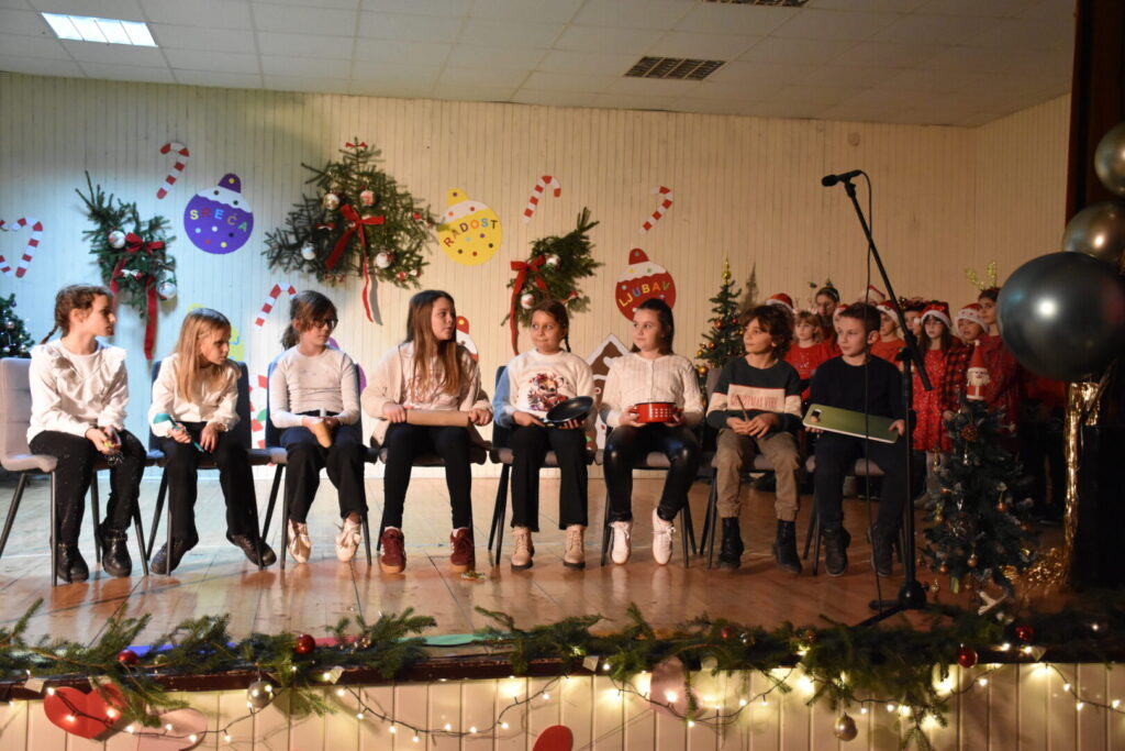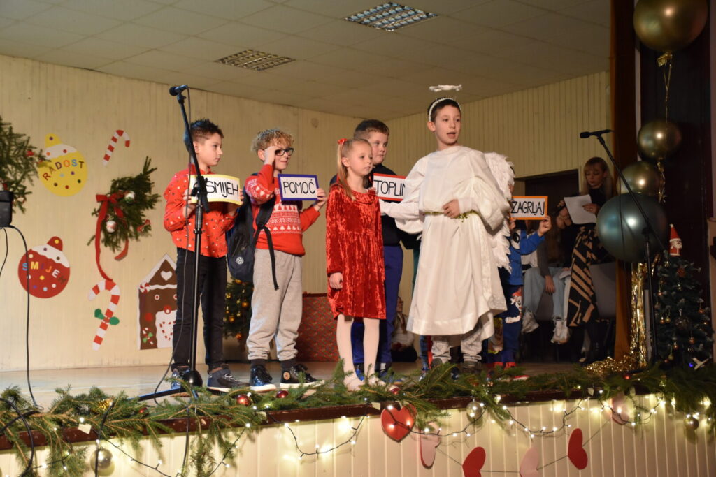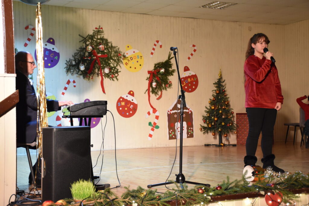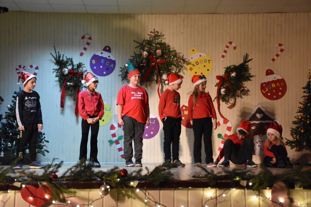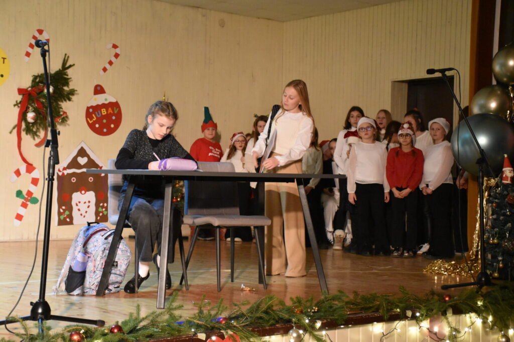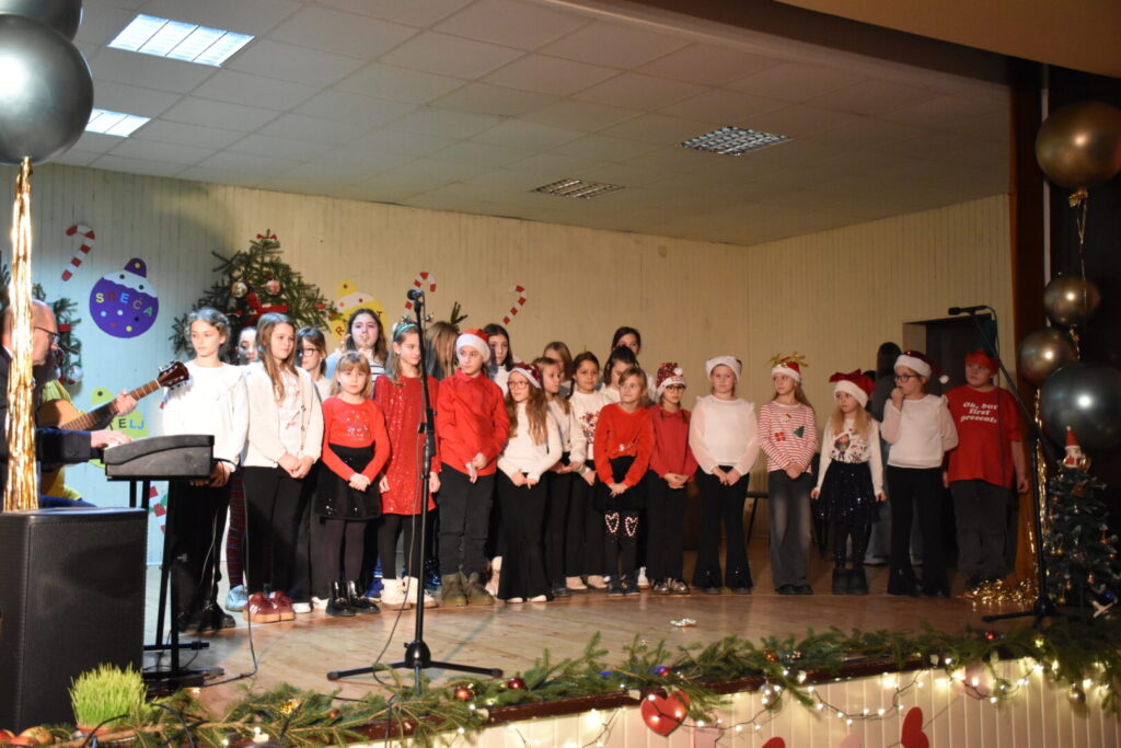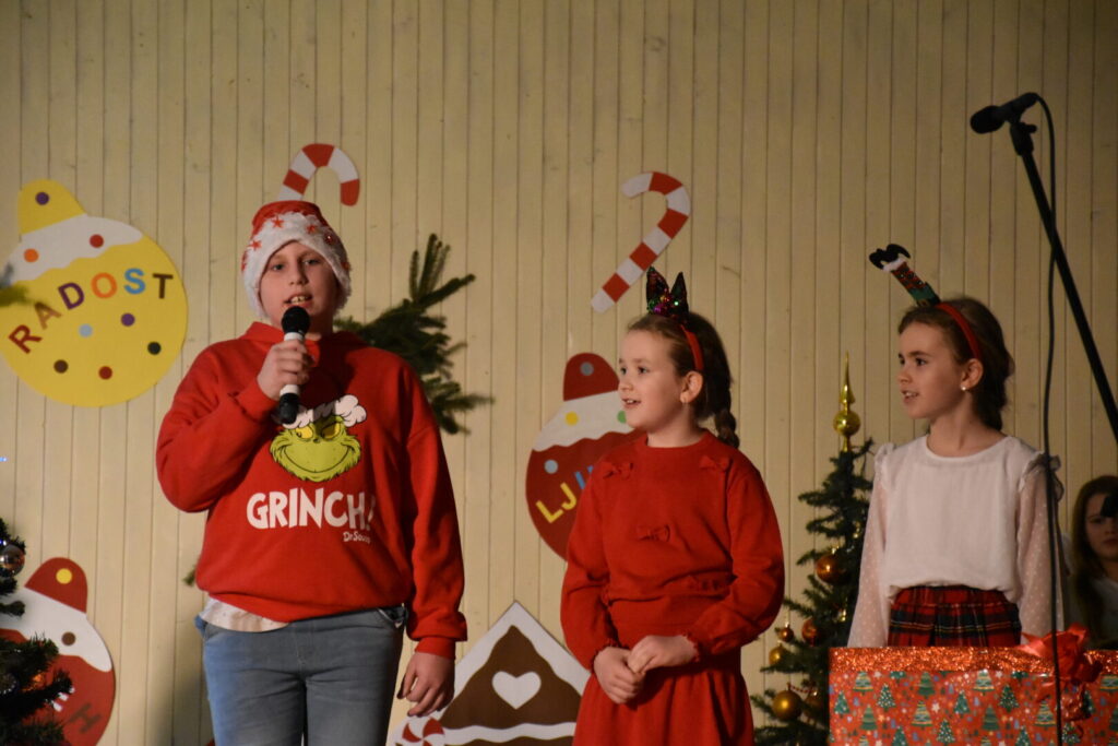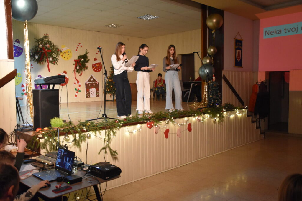Likovnim ukrasima pozornice doprinijeli smo toplini božićne atmosfere, a za stvaranje pozitivne atmosfere posebno se brinula tehnička podrška i naše četiri vesele voditeljice programa. Pobrinuli smo se i za stvaranje trajnih uspomena pa fotografije pogledajte u nastavku ove objave.