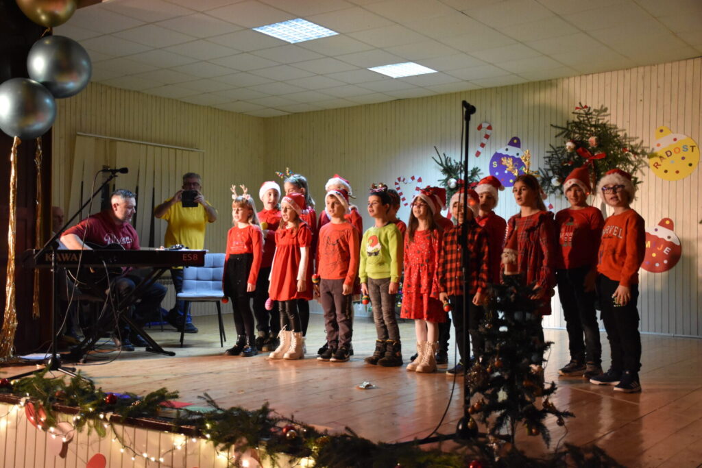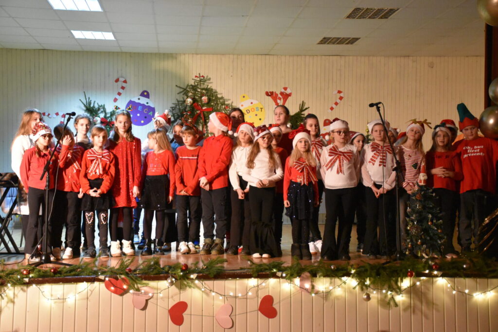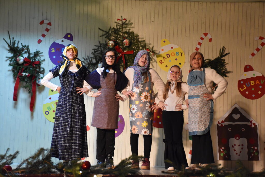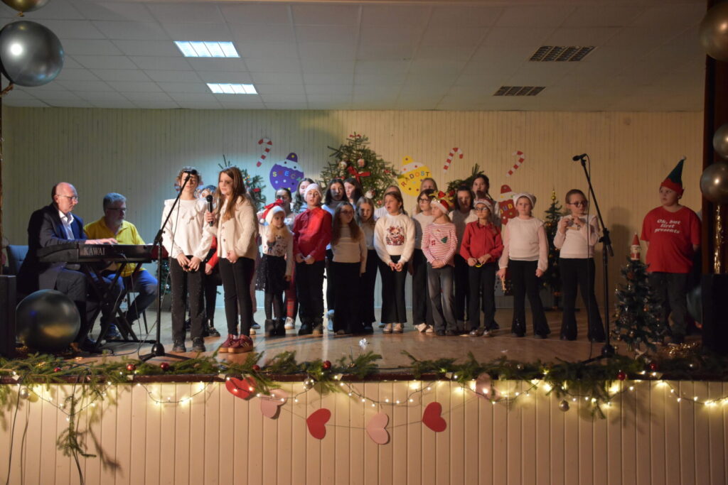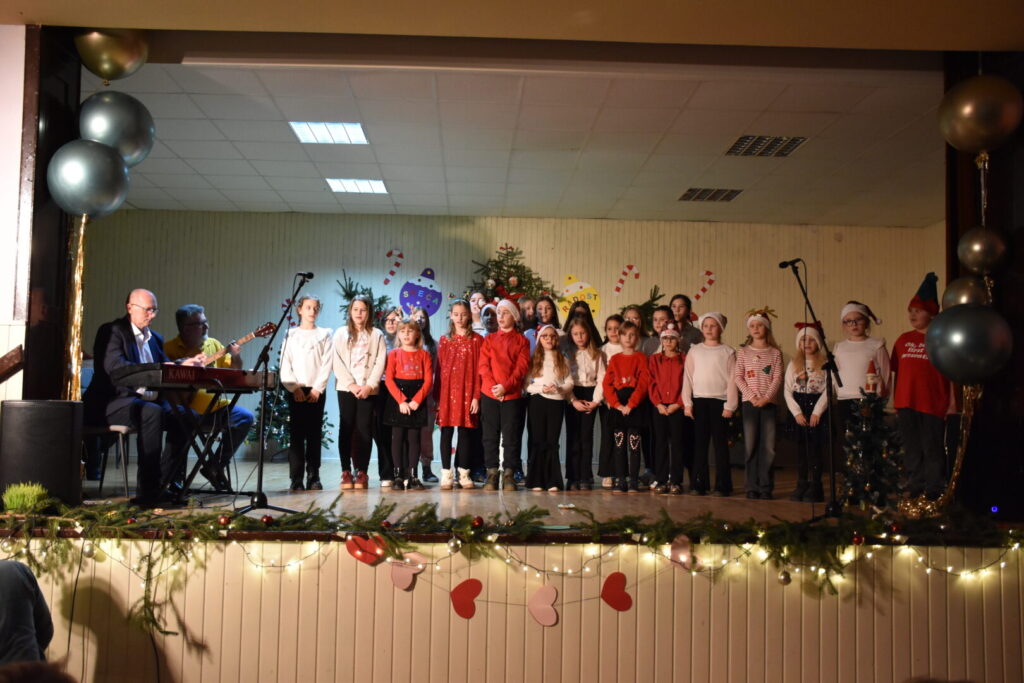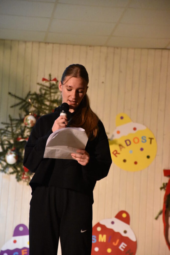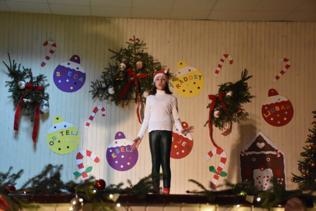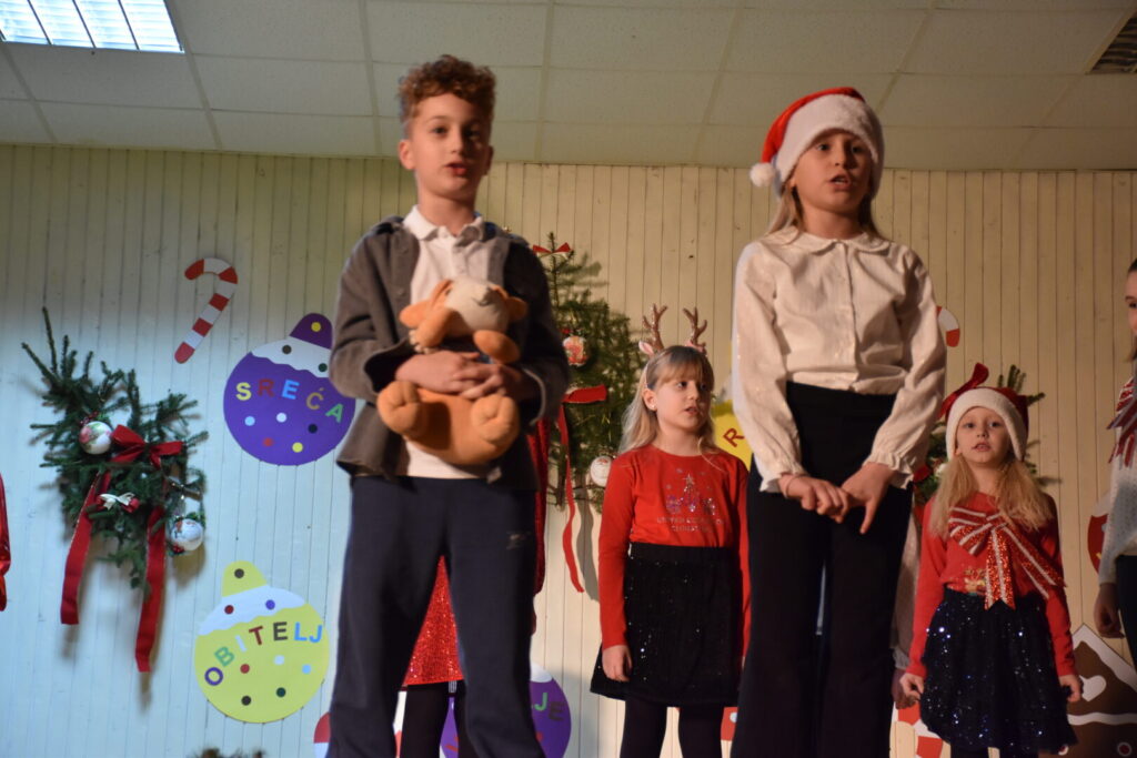 Likovnim ukrasima pozornice doprinijeli smo toplini božićne atmosfere, a za stvaranje pozitivne atmosfere posebno se brinula tehnička podrška i naše četiri vesele voditeljice programa. Pobrinuli smo se i za stvaranje trajnih uspomena pa fotografije pogledajte u nastavku ove objave.