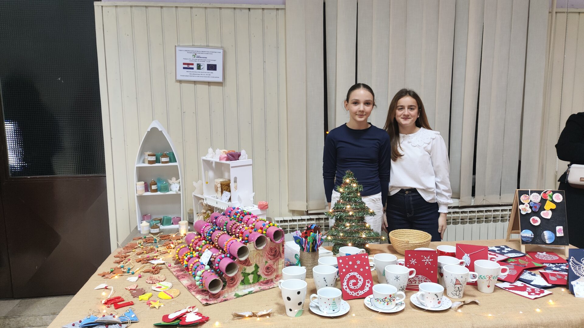 Posjetitelji su imali priliku razgledati i kupiti razne božićne ukrase, likovne radove i rukotvorine koje su izradili učenici naše škole. Tako se Učenička zadruga Jabuka predstavila na božićnom sajmu i ove godine maštovitim asortimanom.