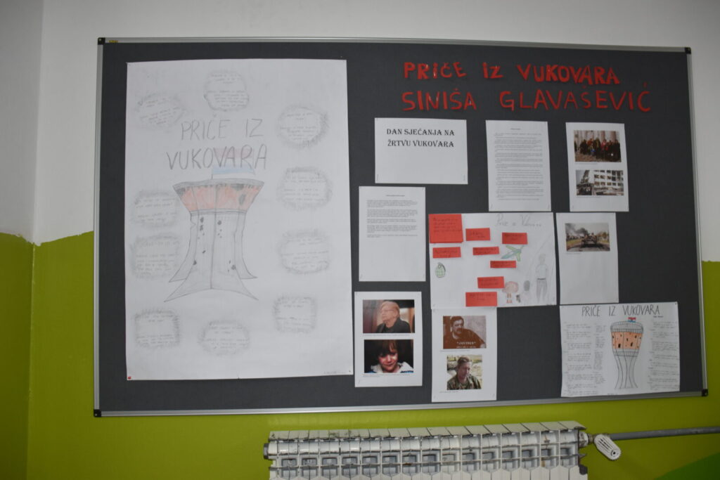 na vjeronaučnoj skupini izrađivali su 86 cvjetova i pripremali pano posvećen poginuloj djeci, na radionici stranoga jezika slušali su pjesme s porukama mira i potom su pisali poruke mira na isprintane vukovarske simbole, na matematičkoj radionici u Escape Room sudjelovali su u potrazi za „izgubljenom“ kutijom Vukovara, na likovnoj radionici slikali su likovna djela s motivom vodotornja, na multimedijskoj radionici dočaravali su fotografije riječima učeniku u paru koji ih je pritom ilustrirao.