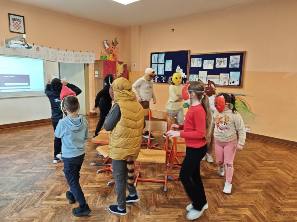 U utorak, 17. veljače 2026., obilježili smo fašnik u Matičnoj školi i Područnim odjelima. Učenici su kroz razne aktivnosti stvarali pravo šareno i veselo ozračje: pjevali su pjesme o fašniku, čitali priče i stihove, izrađivali maske od kaširanog papira i drugih materijala, opisivali svoje maske te izvodili igre i plesove pod maskama. Učionice i hodnici bili su ukrašeni prigodnim likovnim radovima.