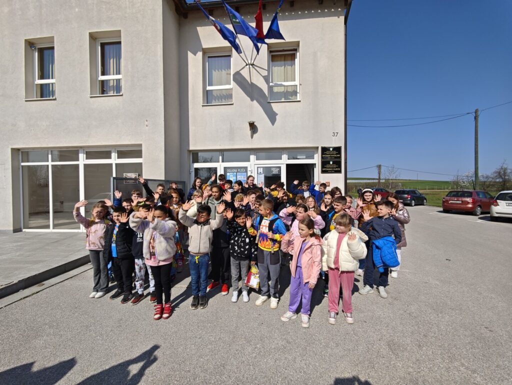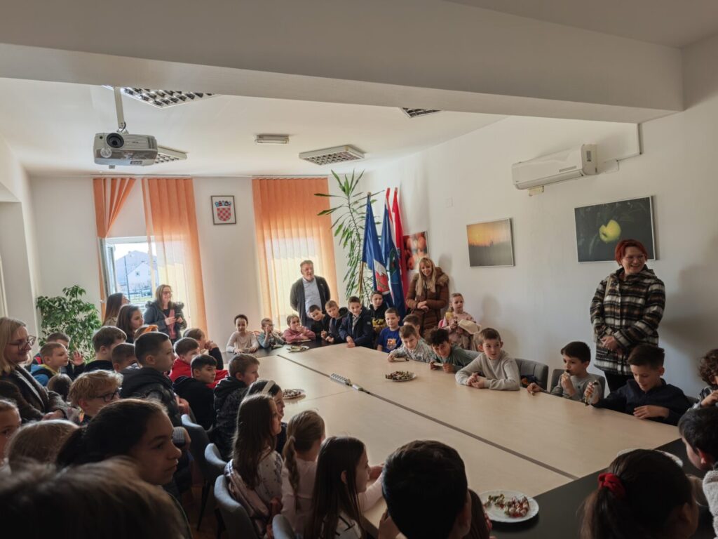 Nakon predstave područni odjeli i 3. razred matične škole odlaze u posjet Općini gdje ih načelnik i općinski radnici upoznaju s radom i važnosti Općine. Sastanak s načelnikom za rezultat je imao neke zanimljive učeničke prijedloge kako poboljšati i obogatiti život u svim naseljima općine.