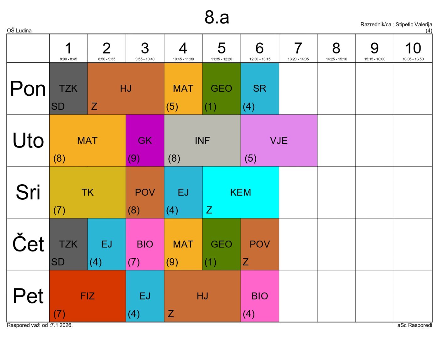 Ovdje možete pogledati raspored sati predmetne nastave za školsku godinu 2025./2026.