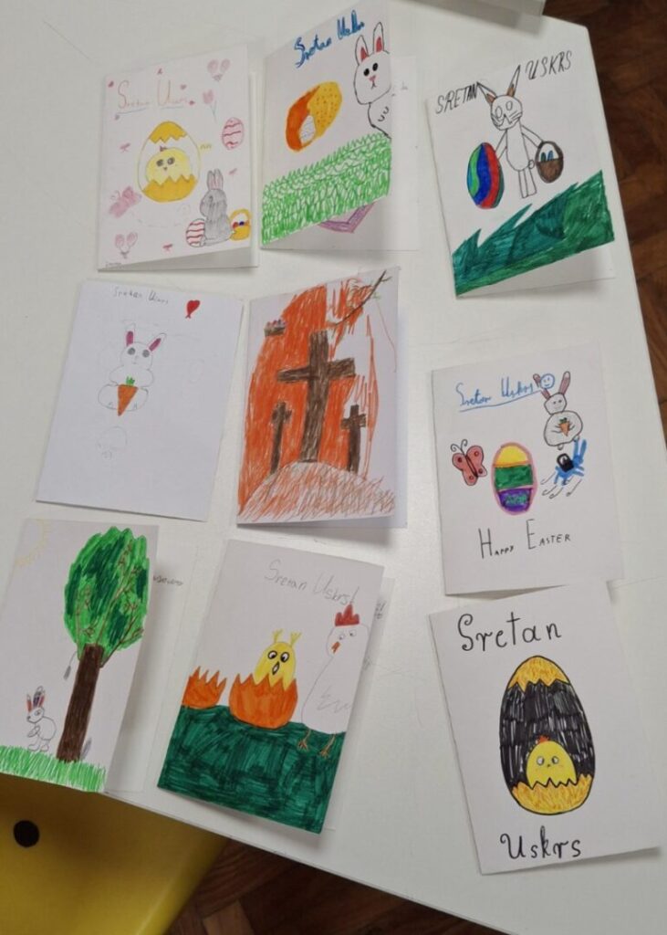 Ususret Uskrsu, učenici razredne nastave matične škole i područnih škola pokazali su svoju maštovitost, trud i zajedništvo kroz razne kreativne aktivnosti. Vrijedne ruke naših učenika izrađivale su prigodne uskrsne čestitke za svoje obitelji, unoseći u svaki rad toplinu, pažnju i osobni pečat.