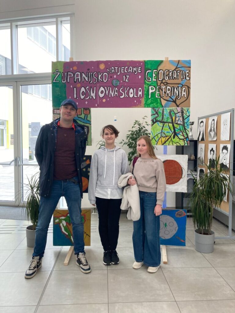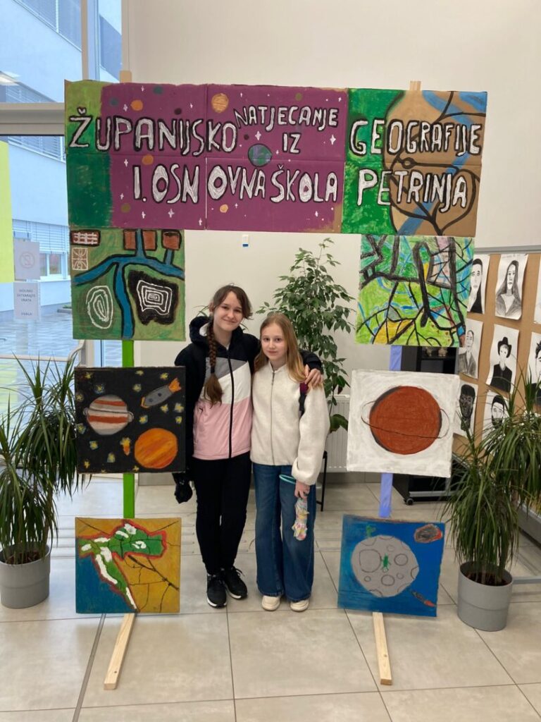 Dana 17.ožujka u prostoru Prve osnovne škole Petrinja,održano je županijsko natjecanje iz geografije.Našu školu predstavljale su učenice Lota Obralić i Arianna Kadoić.